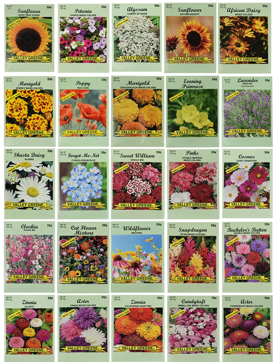 Set Of 25 Valley Green Flower Seed Packets Including 20 Or More Varieties Ebay